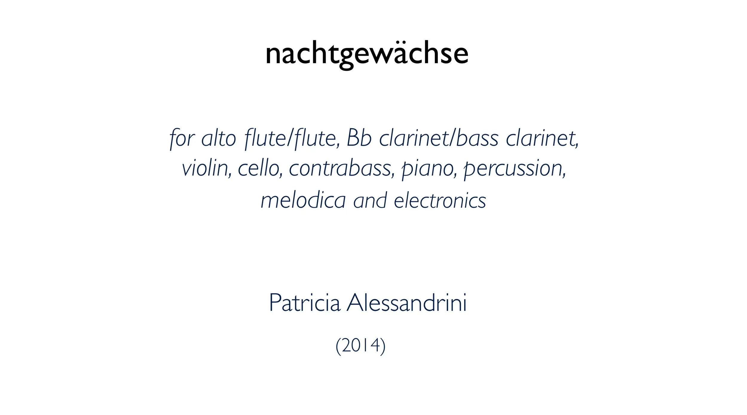 Nachtgewächse is also an exploration of inclusive musical practice: parts written specifically for the contemporary music specialists of the Dal Niente ensemble (in this case, Pierrot ensemble with percussion) are combined with other parts adaptable to a variety of musical and physical abilities. The intention is to allow some parts to be played by any member of the ensemble, regardless of the instrument s/he usually plays, or for the ensemble to invite amateur or professional musicians to perform with them on different occasions. Electronic devices facilitate the execution of these parts, and allow for expressive control of the electronics, which are diffused through the instruments themselves.
